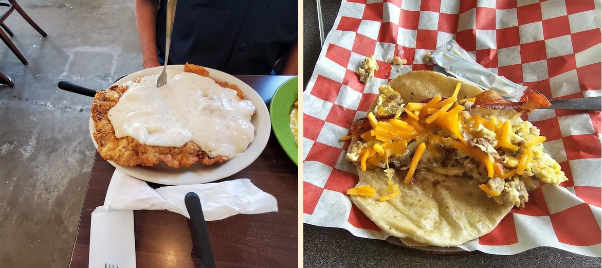Try the chicken fried steak or meatloaf. These classics are comfort food at its best, served with a smile. Consider starting with a breakfast dish, like huevos rancheros, or treat yourself to decadent desserts like cake or pie.